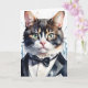 Tarjeta Gato Tabby de Acuarela en Esmoquin y Corbatín Negr