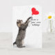 Tarjeta Gato Tabby de Cumpleaños con Globo Cardíaco