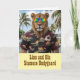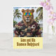 Un león que lleva una camisa hawaiana y gafas de sol tiene un gatito siamés en el bolsillo.