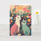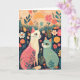 Celebre la serena belleza de la naturaleza con esta impresionante tarjeta de felicitación que presenta una representación de arte moderno abstracto de dos gatos sentados pacíficamente en un hermoso jardín floral. Los colores vibrantes y expresivos y las pinceladas audaces crean una atmósfera tranquila y animada, capturando la elegancia de los gatos en medio de un mar de flores en flor. Esta tarjeta combina perfectamente el encanto de la compañía felina con la belleza relajante de la naturaleza, lo que la convierte en una opción ideal para cualquier ocasión. Ya sea que esté enviando deseos de cumpleaños, expresando gratitud o compartiendo una nota reflexiva, esta tarjeta agregará un toque de capricho y calidez.