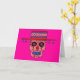 Hombre con cráneo de azúcar en tarjeta de felicitación gorra. El color de fondo se puede personalizar.