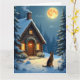 Tarjeta German Shepherd Snowy Forest Cabin Christmas Paint