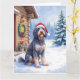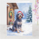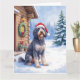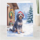 Tarjeta German Wirehaired Pointer Snowy Lodge Santa Hat