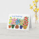 Una tarjeta Get Well Soon con el saludo en noruego y una hilera de macetas de flores de colores, de un collage de papel pintado a mano de Judy Adamson. El interior se deja en blanco para tu propio mensaje y por favor contáctame a través de mi tienda si quieres un saludo de portada diferente.