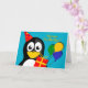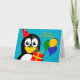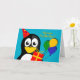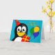 ¡Gëzuar ditëlindjen! Felices saludos de cumpleaños en albanés. Pingüino lindo con gorra de cumpleaños, globos coloridos y un regalo de cumpleaños con arco amarillo. Penguin gracias a: BartM/Openclipart. Arte, imagen y verso copyright © Shoaff Ballanger Studios.