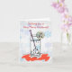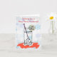 Tarjeta de Navidad con un fondo de copo de nieve que muestra un vaso alto de ginebra con cubitos de hielo, limón y un agitador. La tarjeta dice Deseándote una muy Feliz Navidad y dentro dice Que tu día sea alegre y brillante. Todo el texto se puede personalizar fácilmente utilizando el texto de la plantilla.