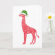 Giraffe en una tarjeta de Santa Hat