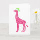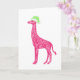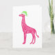 Tarjeta Giraffe rosada con Sombrero de Santa Verde