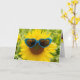 Girasol amarillo con gafas de sol en forma de corazón. Se puede cambiar el texto.