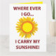 Tarjeta Girasol Sol Girasol diseñada por Nisha Prabhu. Alegrar el día de alguien con esta vibrante tarjeta de girasol. El diseño alegre seguramente traerá una sonrisa al rostro de cualquier persona, lo que la convierte en el estímulo perfecto para un amigo o ser querido. Difunde un poco de sol con esta hermosa y edificante tarjeta.