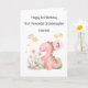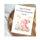 This birthday card is suitable for a granddaughter or daughter's first, 2nd or 3rd birthday. The design includes the number 3 (which can be changed or removed), birthday stars, watercolour grass, flowers and rocks, and a pink and orange dinosaur with balloon.