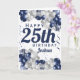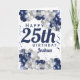 Una preciosa tarjeta de cumpleaños 25 de la marina y el globo de plata. Este fabuloso diseño es la manera perfecta de desear a alguien un feliz cumpleaños 25 (¡o cualquier edad!) Personalizar con nuestro propio nombre y mensaje personalizado. Tipografía de color azul y magníficos globos azul marino y plateado.