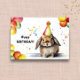 Esta deliciosa tarjeta de cumpleaños de conejo, la manera perfecta de celebrar una ocasión especial con un giro adorable! Esta encantadora tarjeta cuenta con un cautivador ilustracion acuático de un conejo Mini Lop con un alegre gorra fiesta y rodeado de globos vibrantes. Es absolutamente imprescindible para cualquiera que ame estas criaturas adorables y quiera darle un toque de cortesía a sus deseos de cumpleaños.