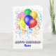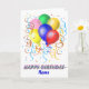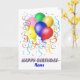 Un ramo de globos y retransmisiones con las palabras Feliz cumpleaños debajo de ellos. Hay un lugar para agregar el nombre del destinatario. Estampilla de franqueo coincidente disponible.