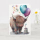 Tarjeta Globos de cumpleaños de acuarela de vaca Highland