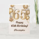 Tarjeta de cumpleaños con globos dorados y confeti número 65. Para personalizar aún más, haga clic en el botón "Personalizar" y use nuestra herramienta de diseño para modificar esta plantilla.