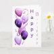 Tarjeta Globos morados, cumpleaños feliz