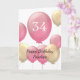 Tarjeta de cumpleaños 34 de color rosa y dorado personalizada para ella, que incluye globos rosados y dorados en la parte delantera de esta tarjeta de 34 años.