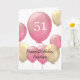 Tarjeta de cumpleaños 51 personalizada en rosa y oro para ella, que incluye globos rosados y dorados en la parte delantera que se pueden personalizar fácilmente con su nombre. Una tarjeta de cumpleaños única para su cincuenta primer cumpleaños.