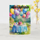 Tarjeta Globos y pastel de cumpleaños en acuarela de patio