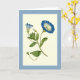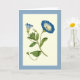 Una buena tarjeta de felicitación en blanco de arte de la revista botánica Curtis. Ilustracion de una pequeña parra de flores de gloria azul matutina (Pequeño Convolvulus o Bindweed).