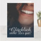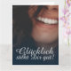 ¡Glücklich steht Dir gut! Kompliment Karte mit lachendem Frauengesicht und handschriftlichen Grüßen auf der Vorderseite der Karte. Restliche Flächen stehen zur freien Verfügung.