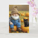Tarjeta Gnome de cumpleaños y Kitten negro en calabazas