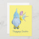 Cute tomte estilo acuarela con dulce ramo de flores primaveral sobre fondo amarillo y texto personalizable "Feliz Pascua".