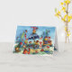 A bunch of sweet little gnomes with red caps are having a picnic in the middle of the woods. They are eating, drinking and listening to music. You can tell by their faces they're having a great time. This is a wonderfull card to send to children to widh them a happy birthday!