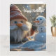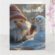 Tarjeta Gnomo adorable y muñeco de nieve en un país de las