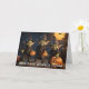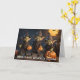 Tarjeta Goblins Halloween Party con calabazas brillantes