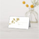 Una forma de hoja de tallo único de oro para un nombre y un número de tabla para el titular del lugar. Texto e imágenes en ambos lados.