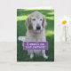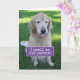 Fotografía divertida de una Tiradora de Oro (Riley) sacando la lengua y sacudiendo la cabeza porque huele a una persona mayor. Resulta que es la persona que sostiene esta tarjeta. ¡Feliz cumpleaños, viejo perro! Tarjeta divertida para tus viejos amigos o familia amantes del perro.