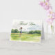 Dé las gracias con estilo gracias a esta encantadora carta temática de golf. Con una mujer que juega a la mitad en un campo de golf exuberante, esta tarjeta es perfecta para los aficionados al golf, entrenadores o amigos que aman el juego. Ideal para cumpleaños, torneos o simplemente para mostrar tu aprecio con un toque deportivo.