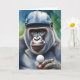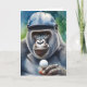 Gorila contemplando su próximo movimiento en esta tarjeta de felicitación en blanco.