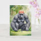Tarjeta Gorila Divertido con Gorra de Béisbol Roja Jugando