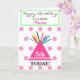 Feliz cumpleaños, sobrina. Personalizar para cualquiera. La sobrina está escrita en color rosa bonito dentro del rectángulo verde menta. Gorra de cumpleaños rosa más brillante con tassel colorido contra puntos de polka rosa pastel sobre fondo blanco. En el interior de la izquierda hay pequeñas flores de bonito con naranja verde amarillo rosa. Deja el mensaje de cumpleaños de sobrina dentro, o personaliza. Grandes globos coloridos en la parte trasera. Diseño original de obras de arte y tarjetas Verse © TamiraZDesigns