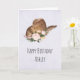 Tarjeta Gorra marrón de vaca con flores rosadas Cumpleaños