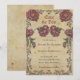 Tarjeta gótica de "Save the Date" con flores oscuras y papel envejecido