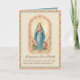 Presentando una hermosa imagen religiosa tradicional católica vintage de la Santísima Virgen María en oración con cita de las Escrituras y oración por la salud dentro de la tarjeta.