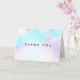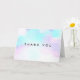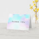 Tarjeta de agradecimiento con un diseño de acuarela abstracta moderna. Los colores azul y púrpura se mezclan y se entrelazan en un patrón abstracto de colores pastel suaves.