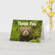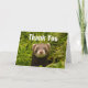 Una carta de agradecimiento con una adorable fotografía que muestra un pequeño hurón marrón parado en un pasto largo. ¡Cuidado como puede ser!
