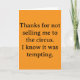 Tarjeta Gracias por no venderme