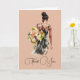 tarjeta de agradecimiento de bonito para dama de honor o dama de honor de la fiesta nupcial. Hecho en un color melocotón pálido, con acuarela de una mujer con flores hace de esta una elegante carta de gratitud a su fiesta nupcial, después de su boda. Personalice todos los campos de texto para leer lo que desee.