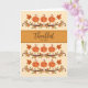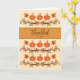 El día de gracias es el momento perfecto para que tu familia y amigos sepan lo mucho que significan para ti. El frente tiene calabazas y hojas de otoño y "Gracias por ti" en colores de otoño y escritura a la moda. El interior tiene un saludo "Pensando en ti y deseándote un maravilloso Día de Acción de Gracias", pero puedes personalizarlo fácilmente con cualquier saludo que quieras.