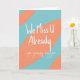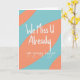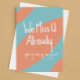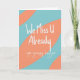 ¡Es gracioso dejar la tarjeta para ese gruñón colega de trabajo! Palabras en la parte delantera de la tarjeta: "ya te extrañamos... ¡eres un toro gruñón!" Diseño abstracto en paleta de color turquesa y marrón con tipografía manuscrita blanca.