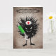 Graciosa tarjeta de Halloween con un ilustracion personalizado de un personaje malvado que sostiene una jeringuilla y el texto de personalizable "Feliz Halloween" sobre fondo de color gris oscuro. Esta extraña criatura ha preparado una inyección con una medicina desconocida - puede ser una medicina milagrosa pero también puede ser un veneno. ¿Quién quiere ser curado?