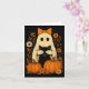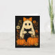 Tarjeta Gracioso fantasma con gato negro cayendo Halloween