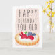 ¡Feliz cumpleaños! Una tarjeta de cumpleaños linda, divertida y nada descubierta con "Feliz cumpleaños, vieja tarta" escrito con una tarta y crema de fresa dibujada a mano y arándanos arándanos. El color del marco rosado es totalmente editable. Con una tipografía moderna.