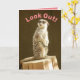 Cute Meerkat en la mirada. La parte delantera de la tarjeta dice, "¡Cuidado!" (porque eso es lo que hace el alfha Meerkat). Dentro dice: "¡Es tu cumpleaños! Pero no te preocupes. Eres sólo un "meer" año mayor." Meer se escribe adrede "meer" en lugar de "mero" porque ya sabes, es un Meerkat.